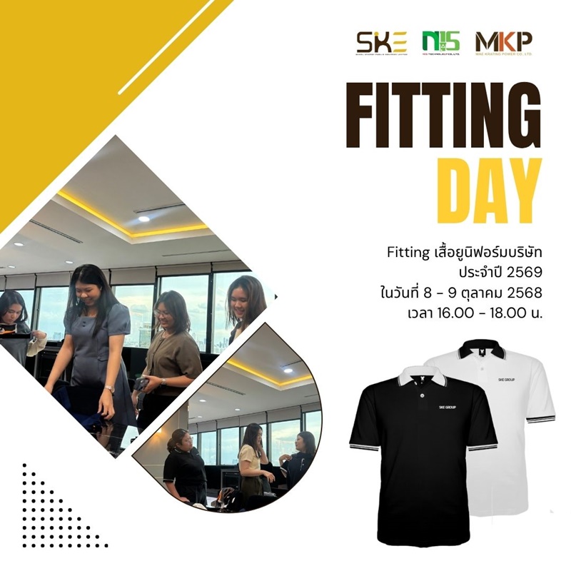 - กิจกรรม “Fitting Day” ยังเปิดโอกาสให้พนักงานได้เลือกขนาดเสื้อที่เหมาะสม และได้สัมผัสเนื้อผ้าที่ถูกคัดเลือกอย่างดี เพื่อให้ทุกคนรู้สึกภูมิใจและมั่นใจในยูนิฟอร์มใหม่ที่ออกแบบ “โดย SKE เพื่อพนักงาน SKE” อย่างแท้จริง